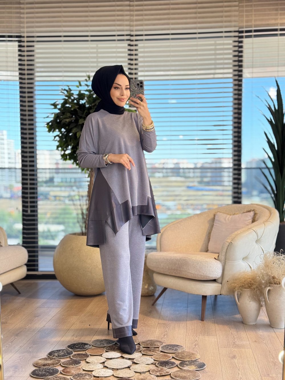 02-2666 Etek Ve Paça Ucu Deri Parçalı Takım Gri