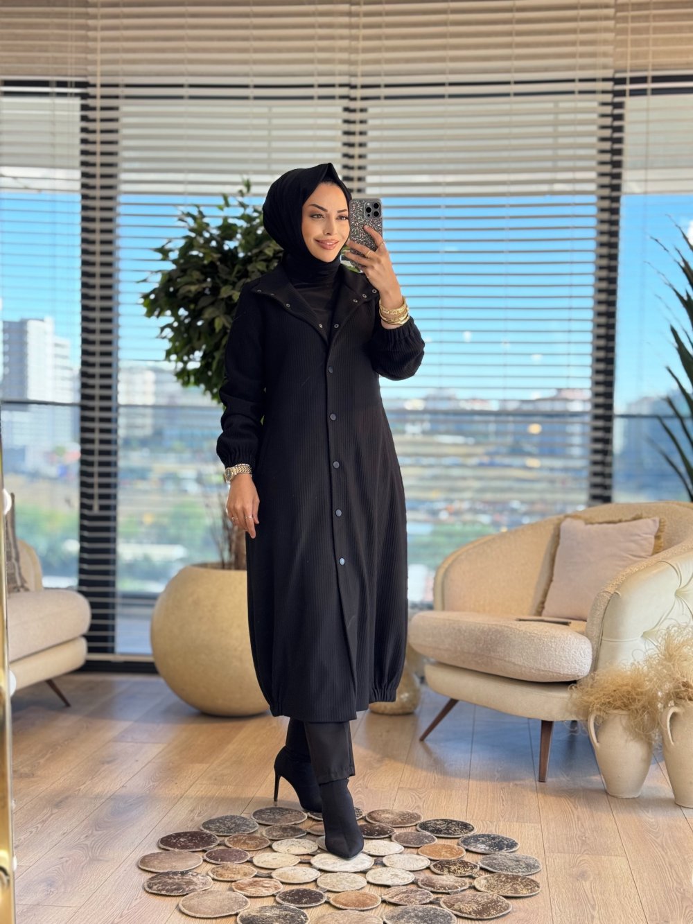 04-1261 Boyuna Fitilli Çıtçıtlı Kap Siyah