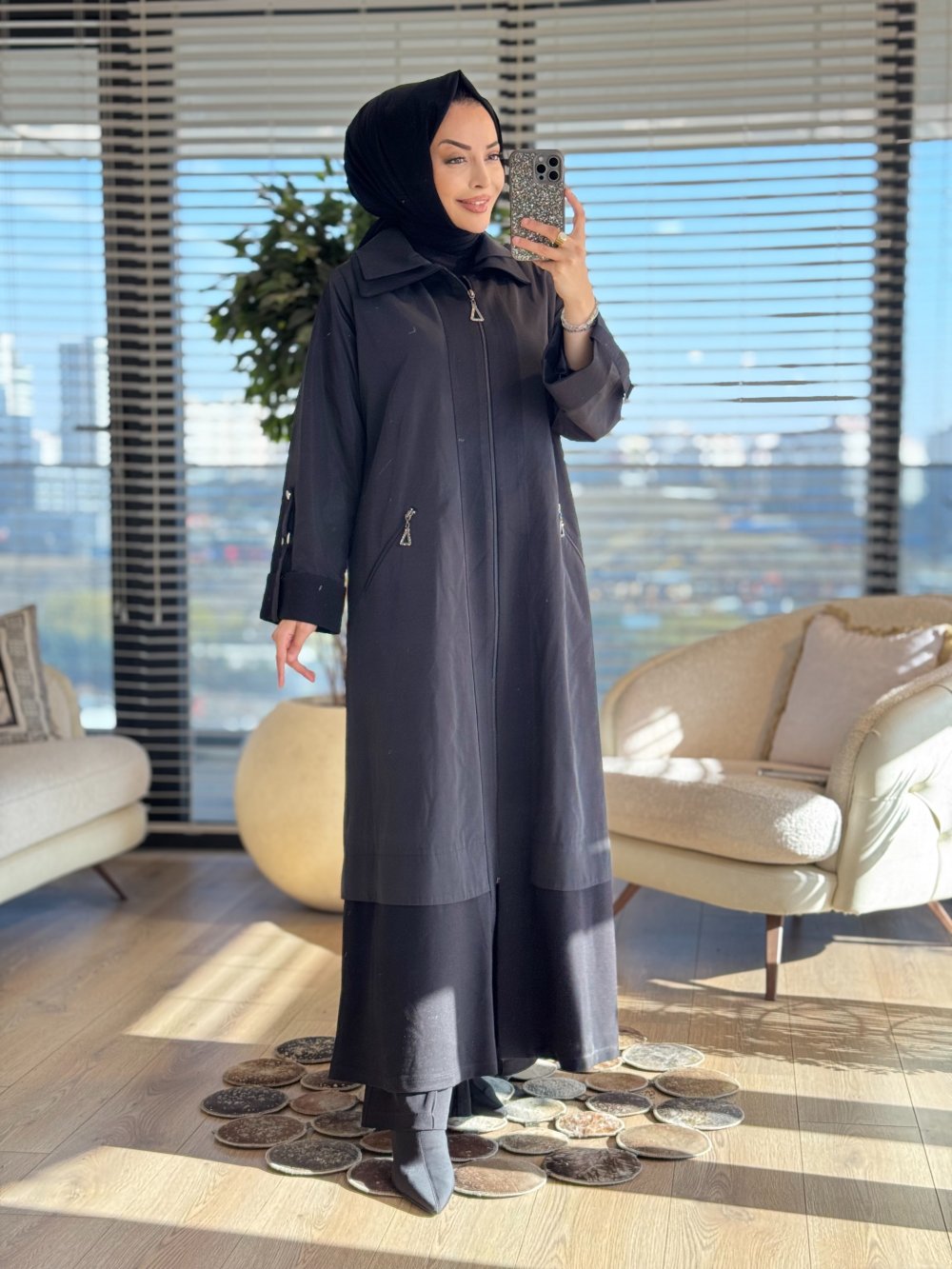 04-1494 İki Yakalı Patı Kaşe Kumaş Kap Siyah