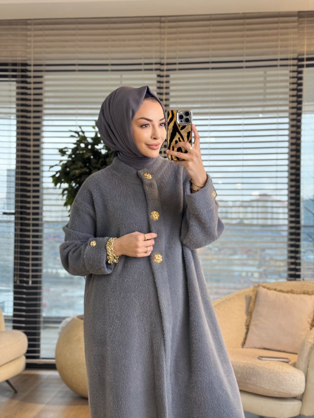 080 Angora Patı Ve Manşeti Düğmeli Kap Antrasit