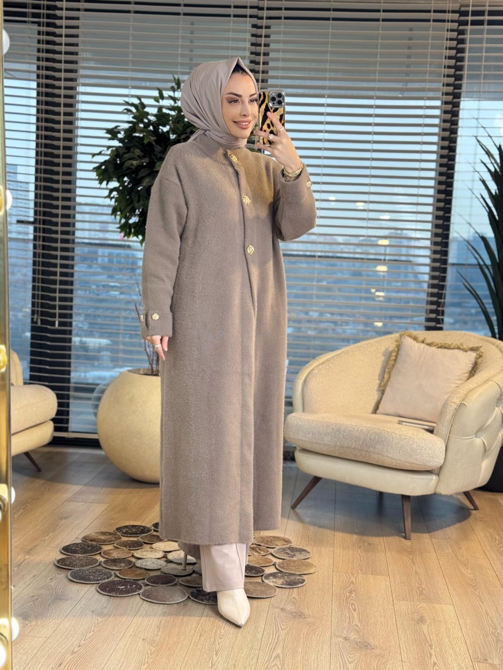 080 Angora Patı Ve Manşeti Düğmeli Kap Vizon
