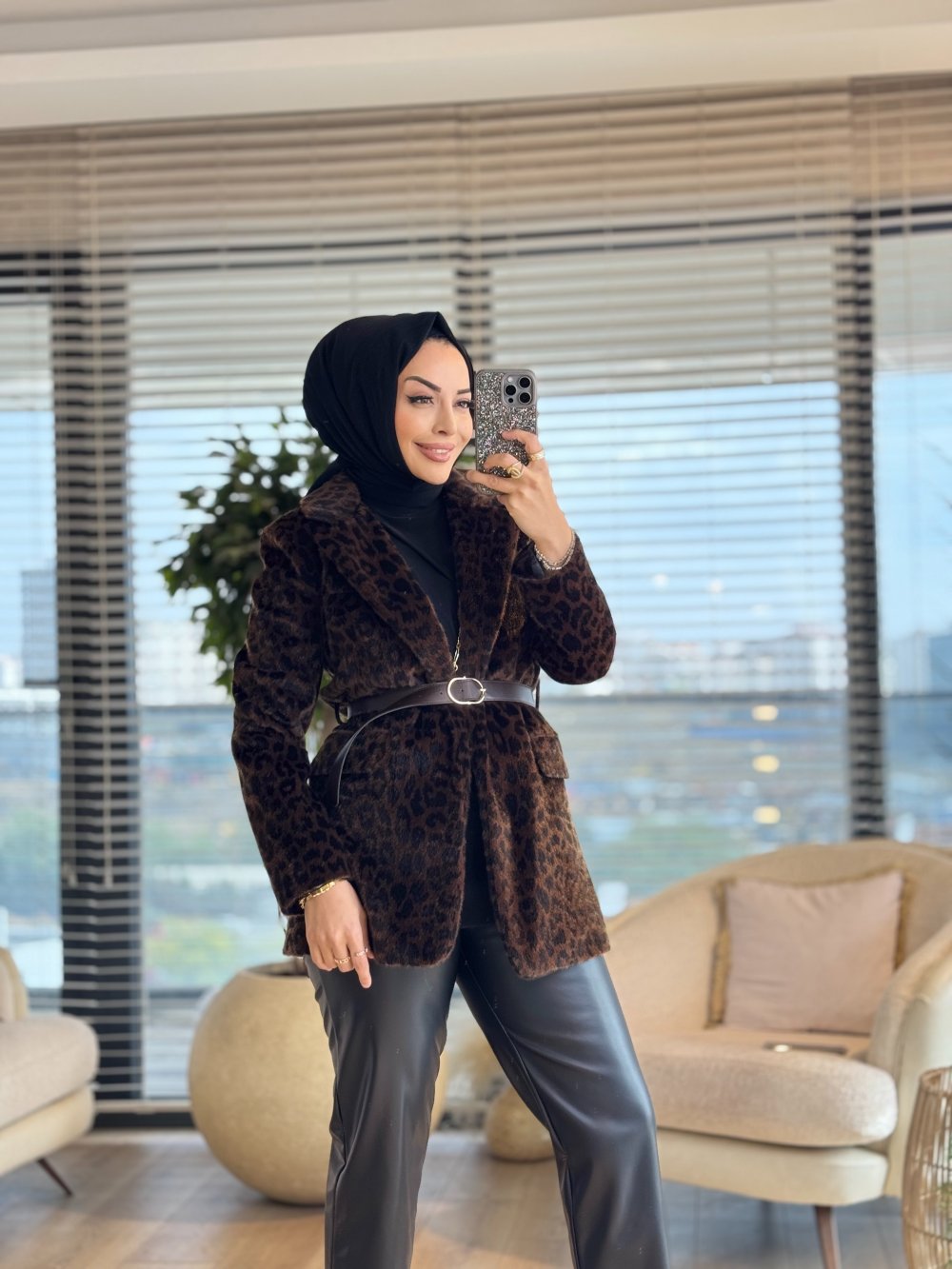 1005514 Leopar Kürk Blazer Ceket Leopar