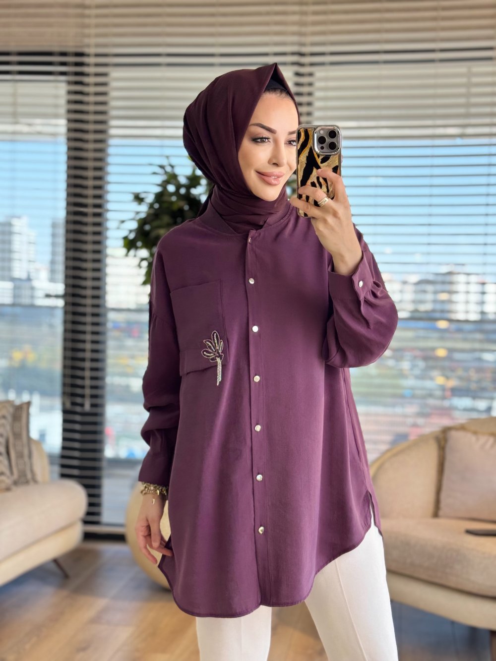 10763 Cep Üstü Broş İşli Gömlek Mürdüm