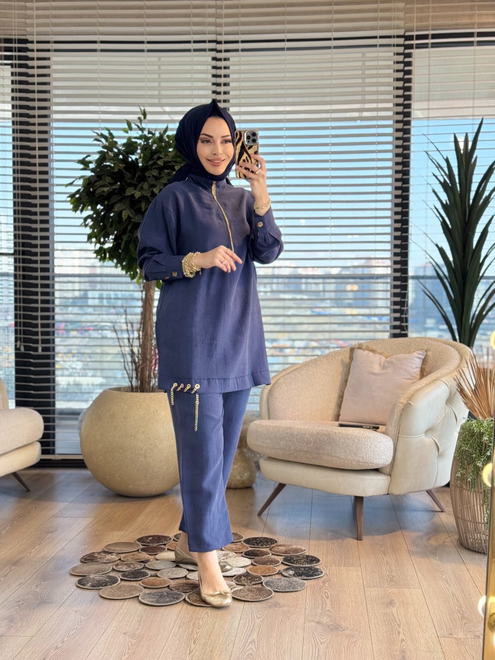 10900 Patı Fermuarlı Eteği Zincirli Pantolon Takım Lacivert