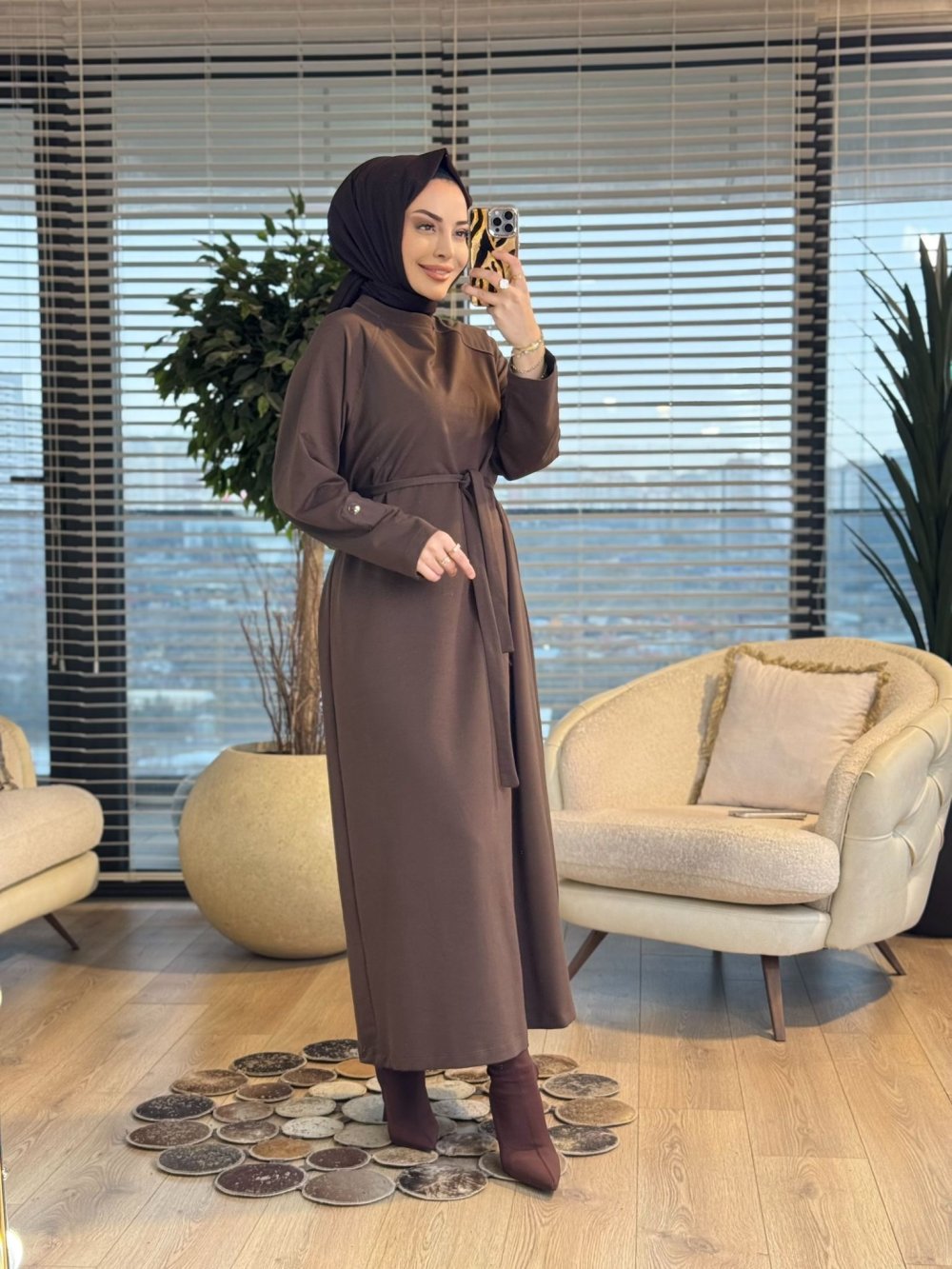 12671 Sol Kolu Çıtçıtlı Elbise Kahve