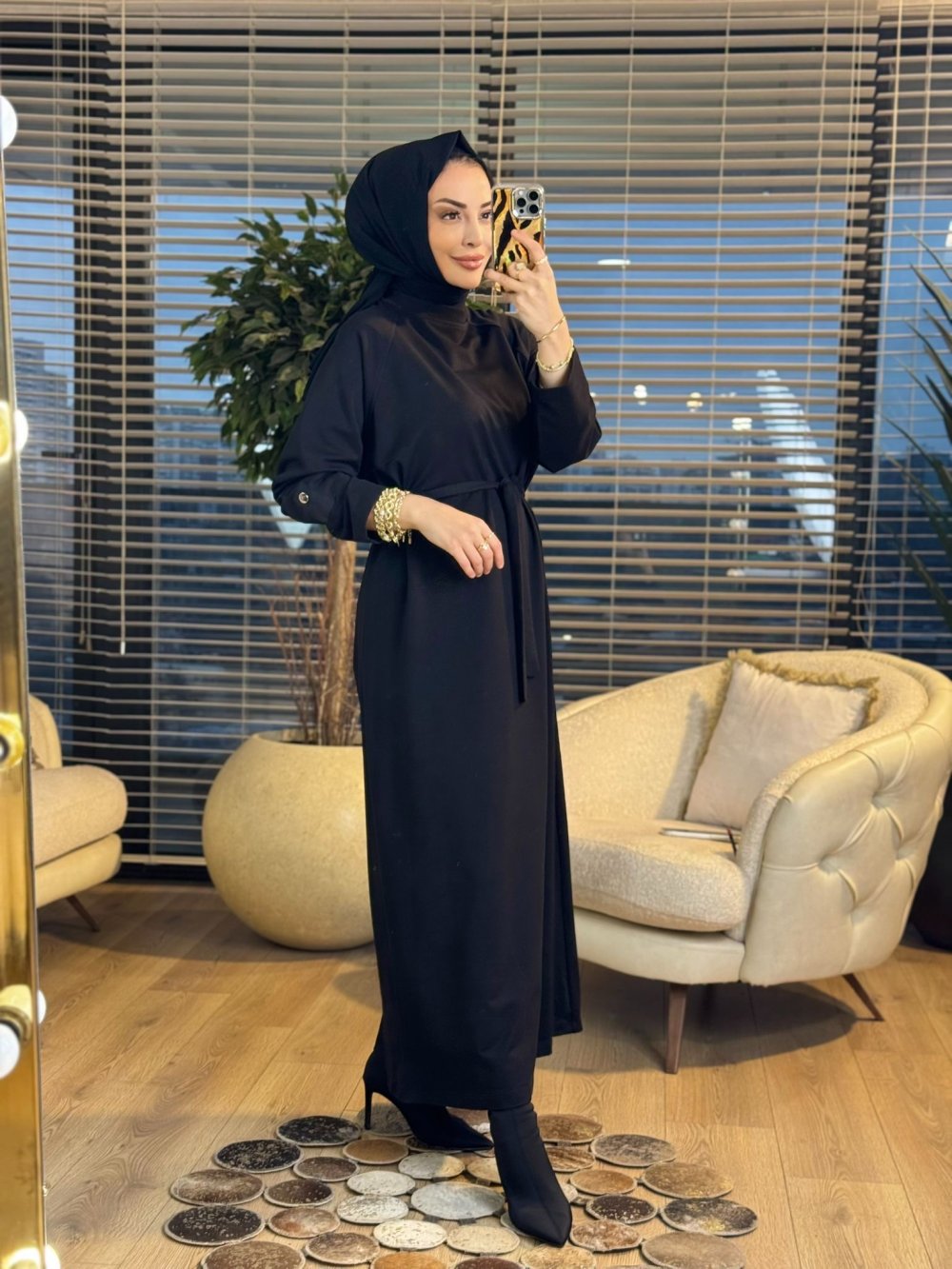 12671 Sol Kolu Çıtçıtlı Elbise Siyah