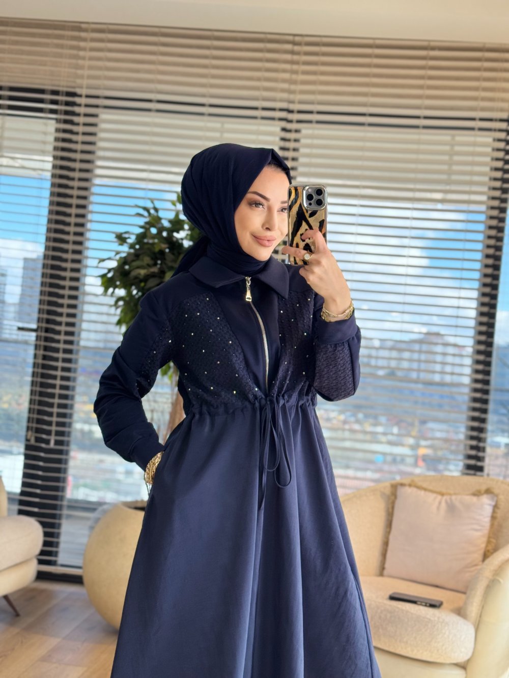 12674 Roba Ve Kol Petek Desen Elbise Lacivert