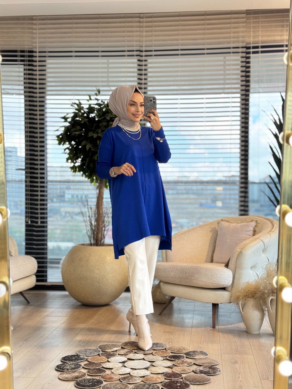 127 Kolları Lastik Örgü Triko Tunik Lacivert