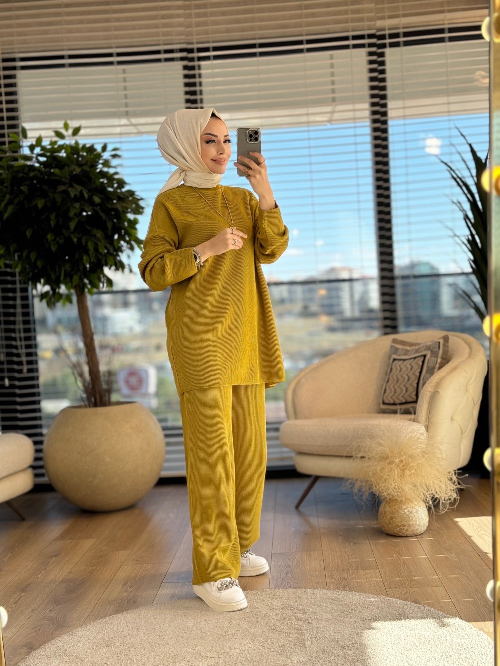 14053 Selanik Triko Pantolon Takım Yağ Yeşili