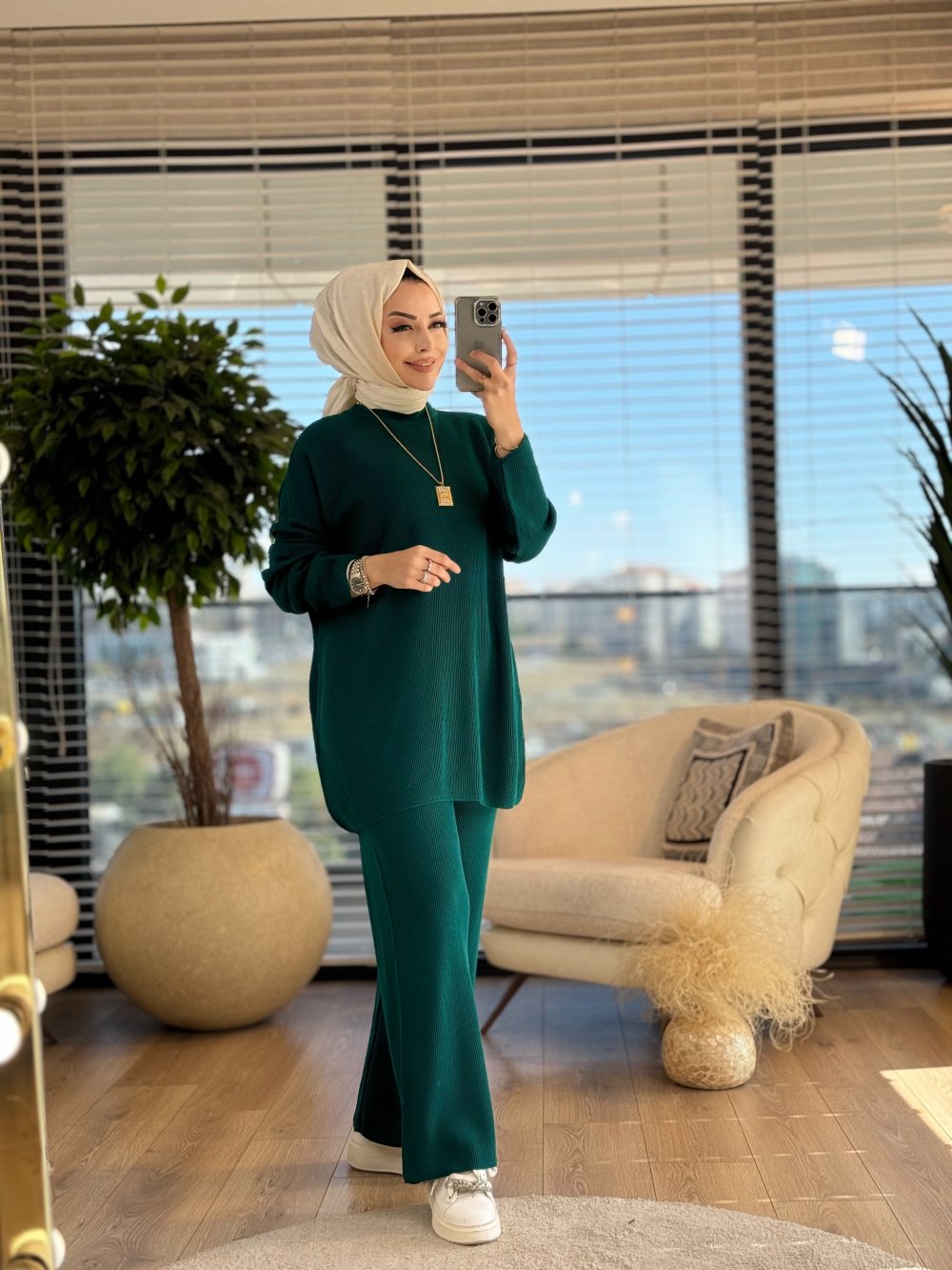 14053 Selanik Triko Pantolon Takım Zümrüt
