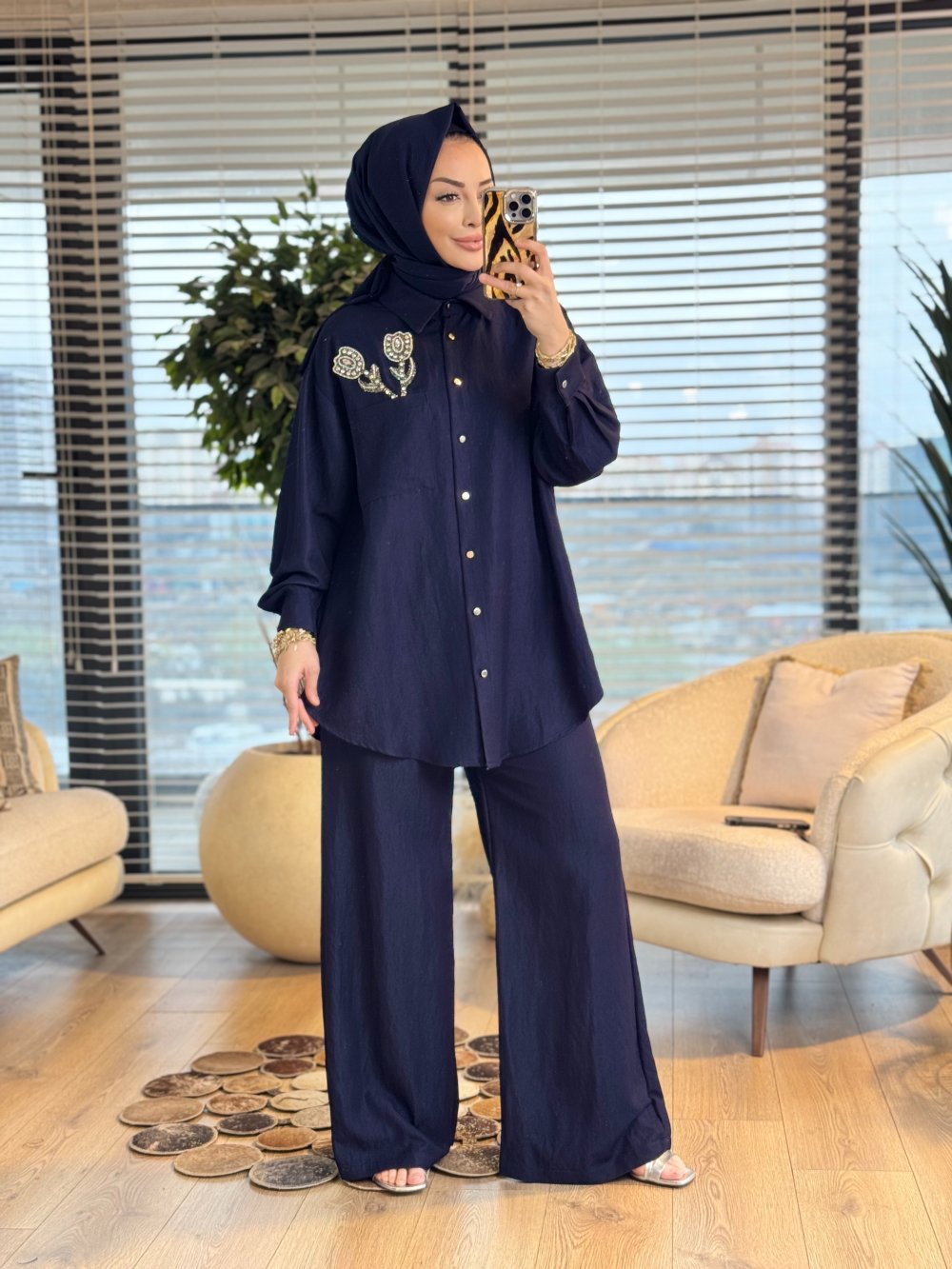 14435 Sol Göğüs Taş Lale Broşlu Takım Lacivert