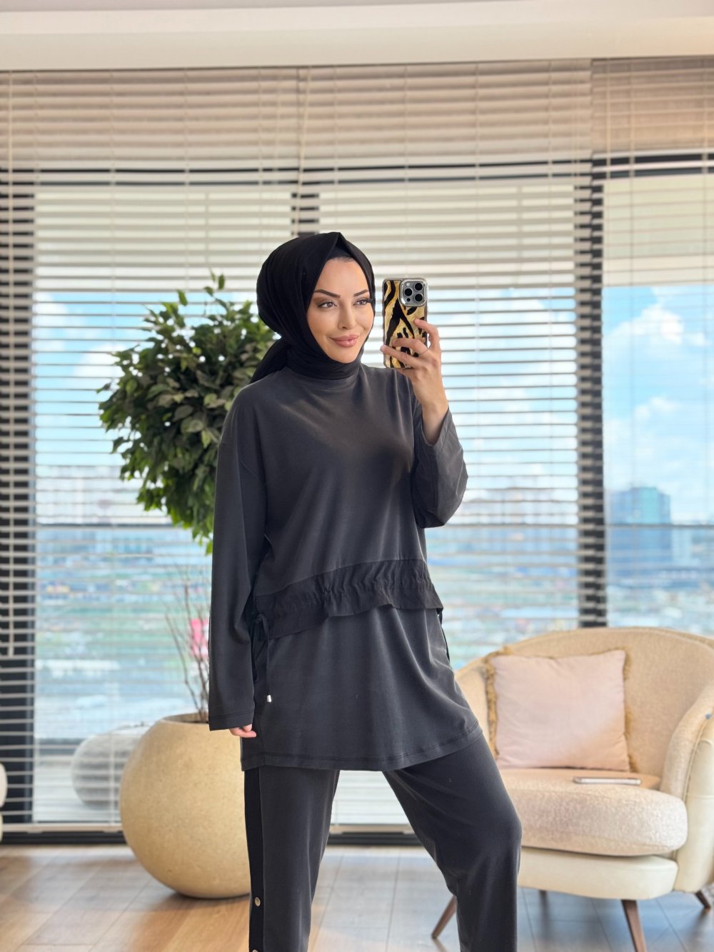 14456 Önü Saten Şerit Detaylı Takım Siyah