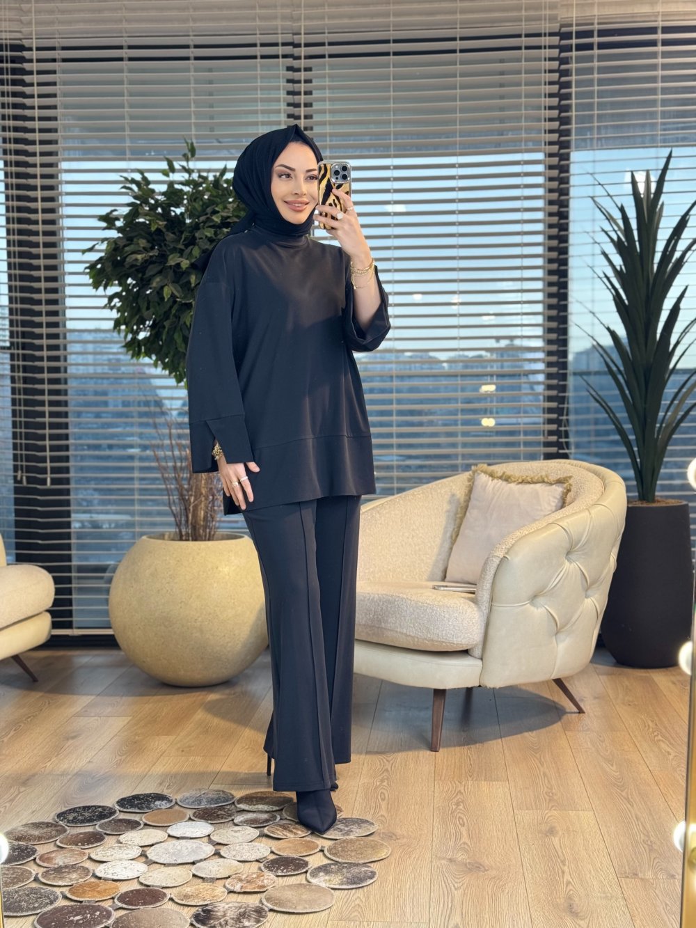 14457 Etek Ucu Parça Yırtmaçlı Takım Siyah
