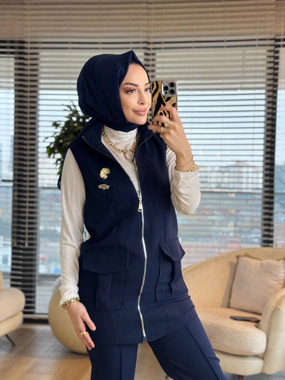 14463 Önü Cepli Ferm. Yelekli Takım Lacivert