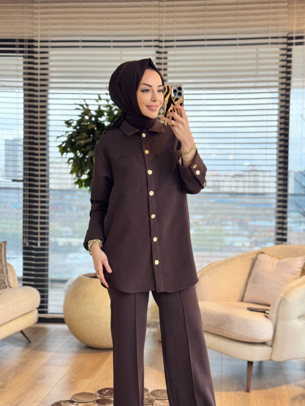 14464 Ön İki Cepli Metal Düğmeli Takım Kahve
