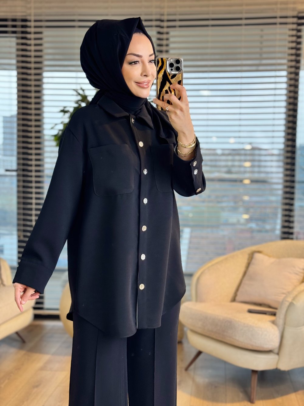 14464 Ön İki Cepli Metal Düğmeli Takım Siyah