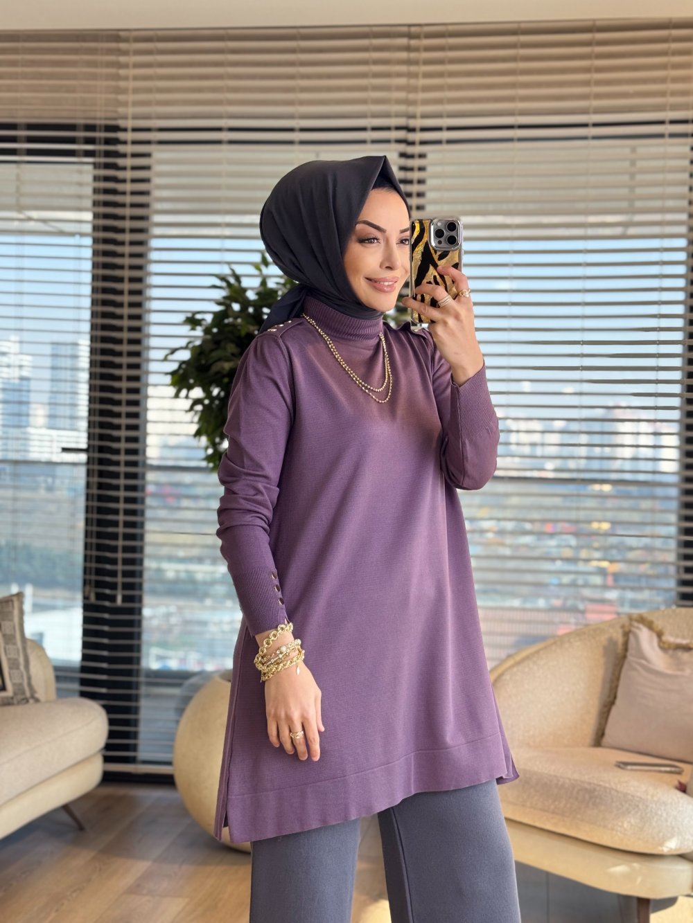 165 Omzu Düğmeli Triko Tunik Siyah