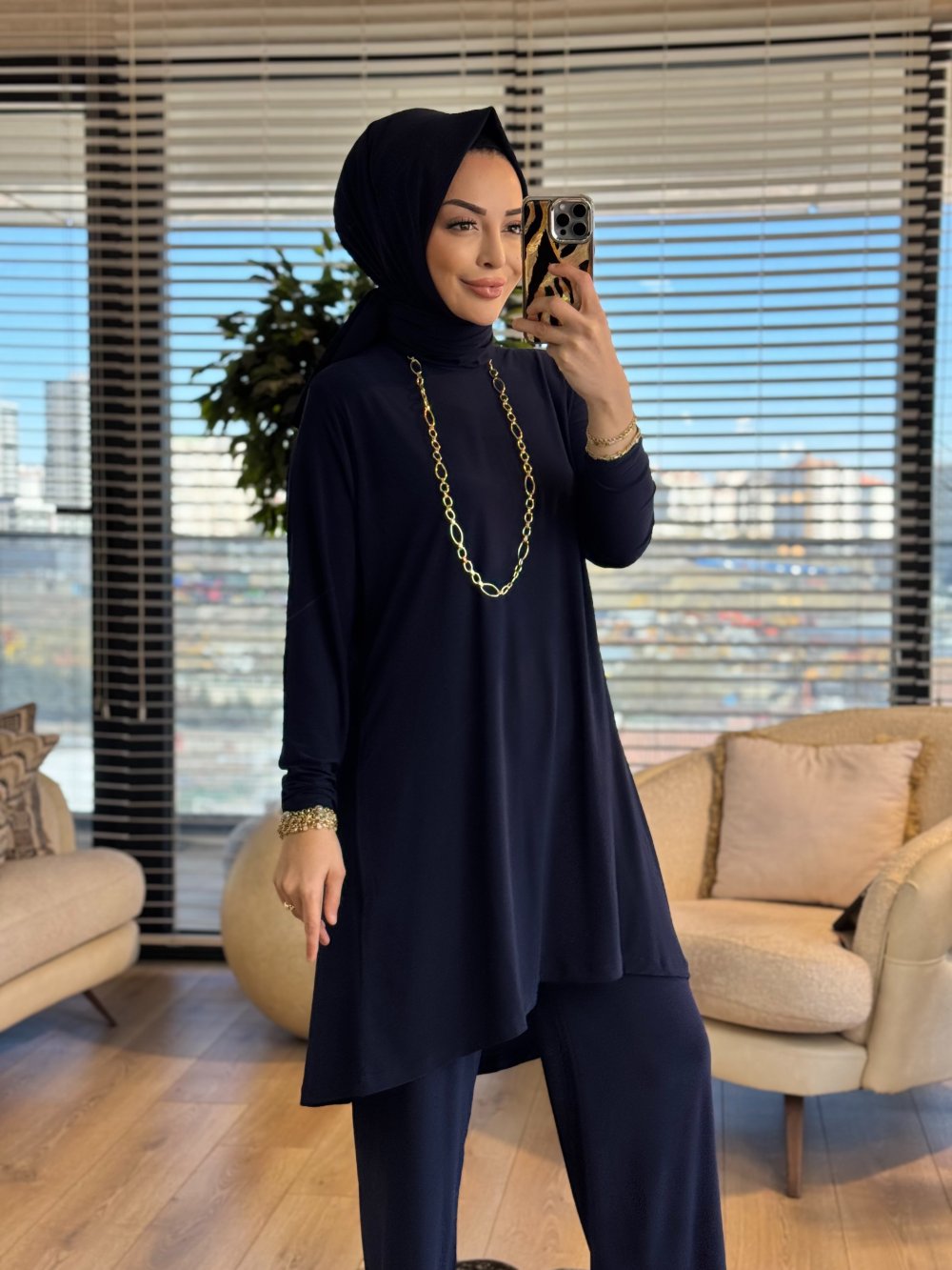 Tunik ön boy 87-89 cm, arka boy 100 cm, pantolon boy 101 cm