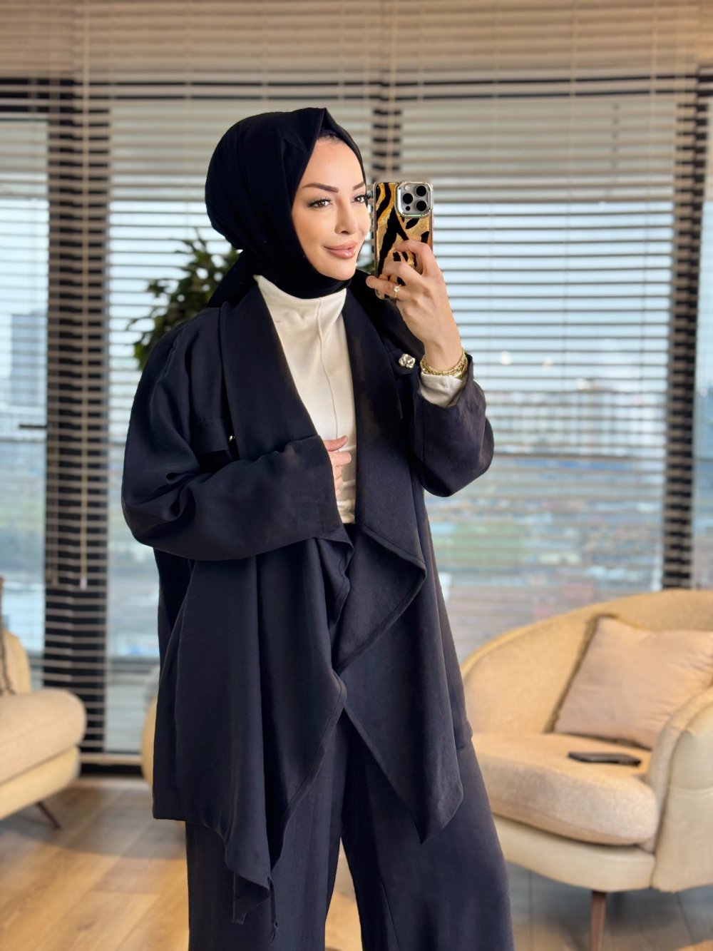 19267 Şal Yaka Büyük Beden Takım Siyah