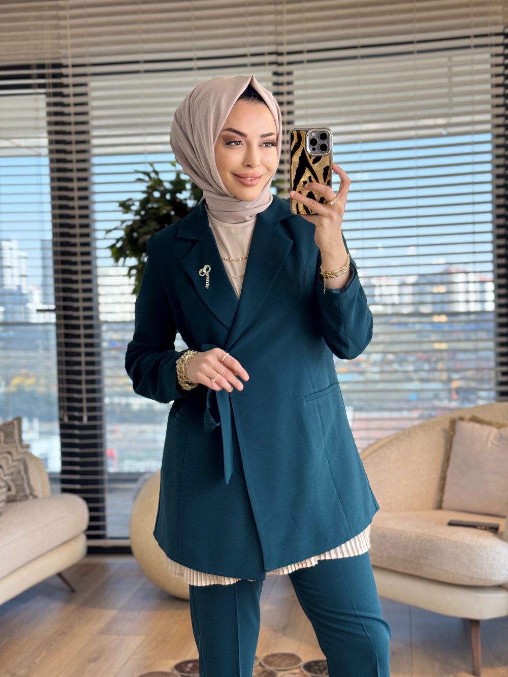 2016 Yandan Bağlamalı Ceketli Takım Zümrüt