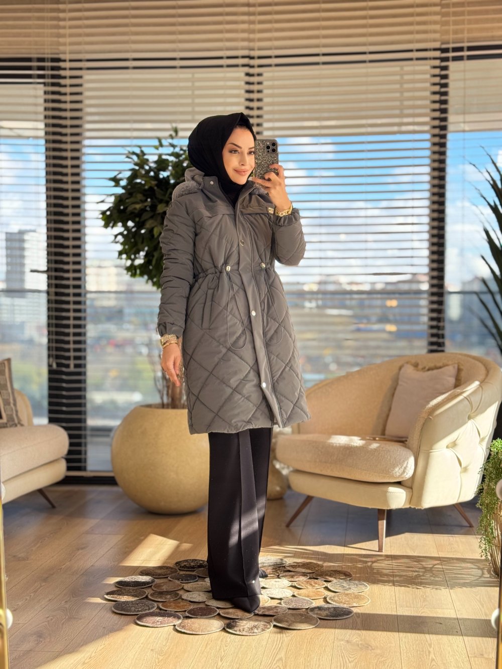2024 Kapitone Kapş.Kürk Uzun Kaban Antrasit