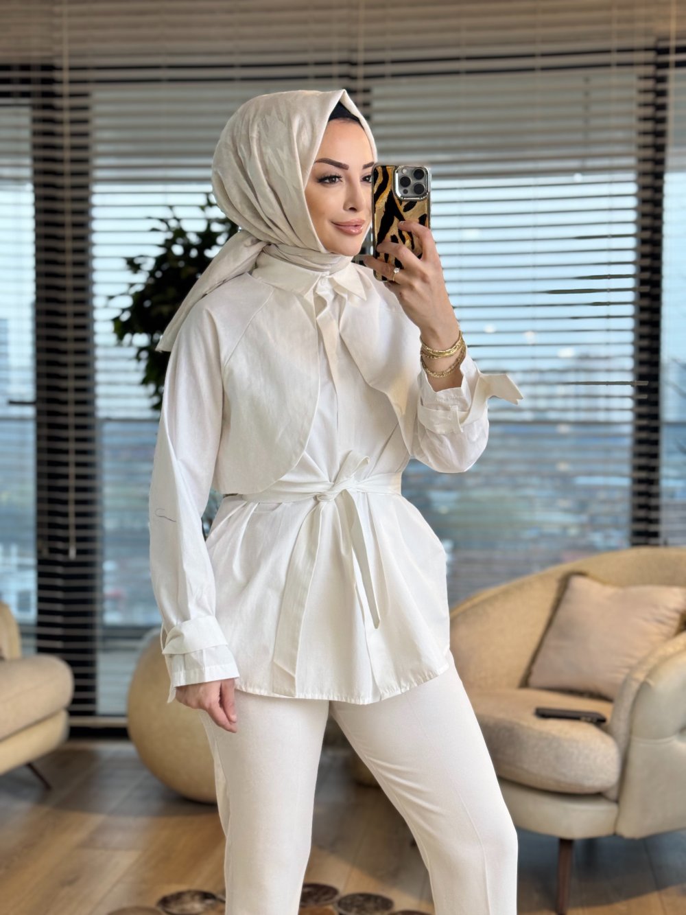 20759 Ön Parça Detaylı Gömlek Beyaz