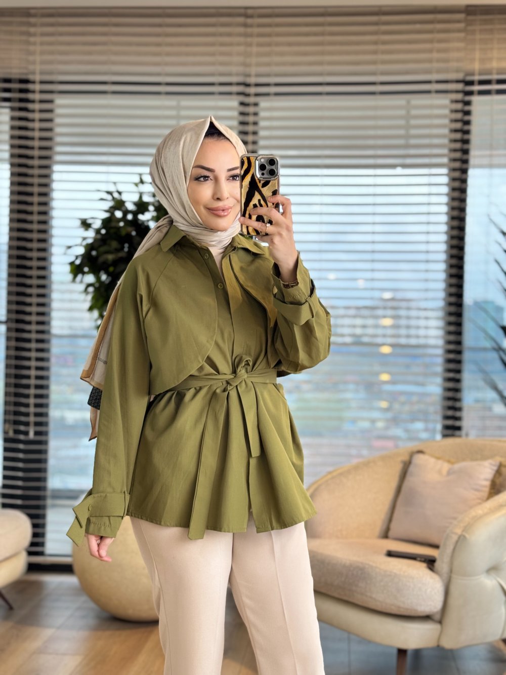 20759 Ön Parça Detaylı Gömlek Haki