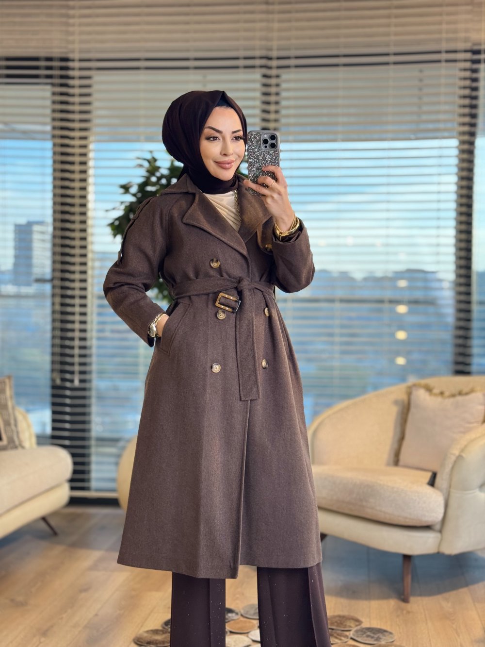 2186 Kaşe Altı Düğme Apoletli Kaban Kahve