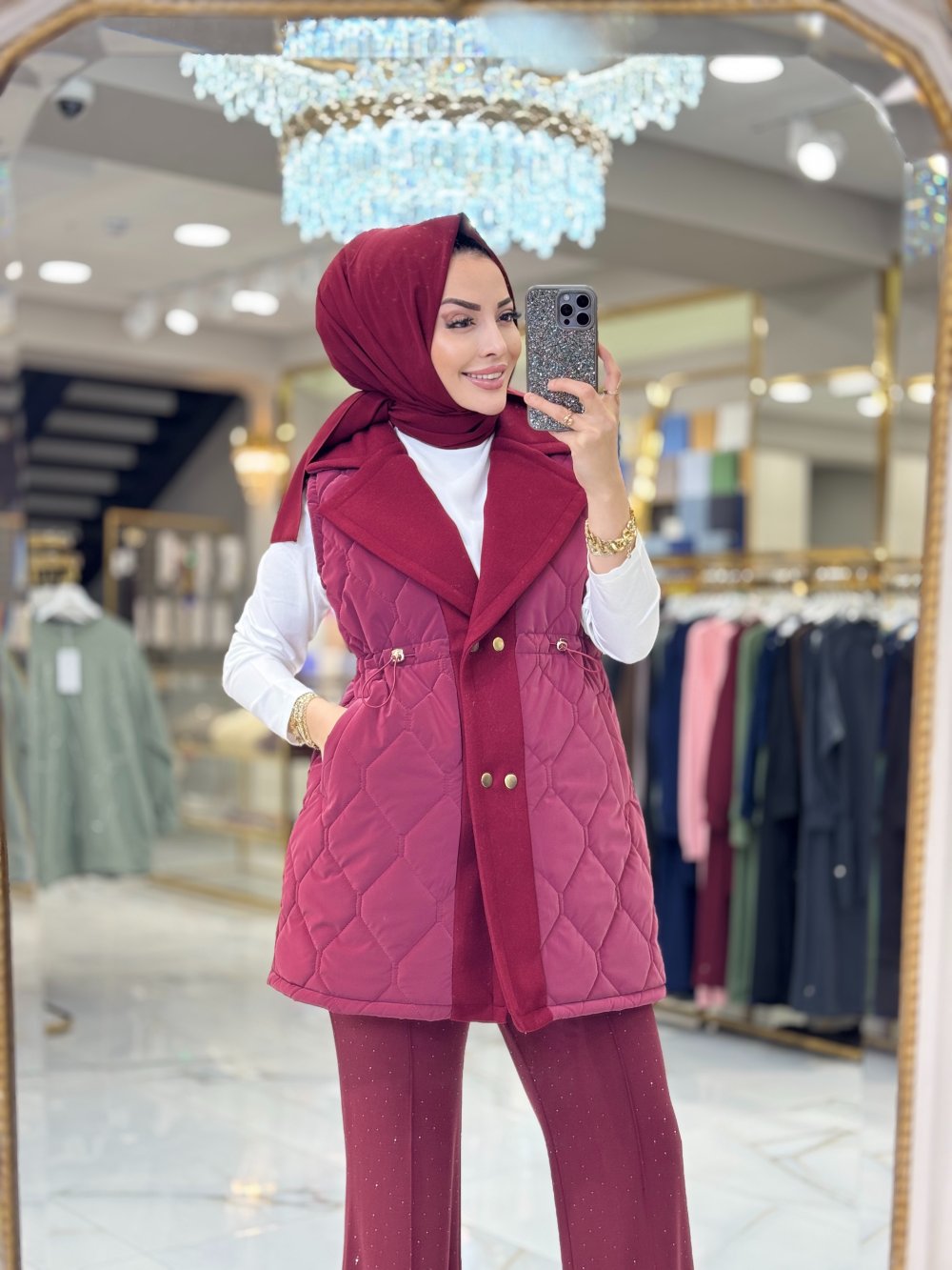 2190 Kapitone Kaşe Detaylı Yelek Bordo