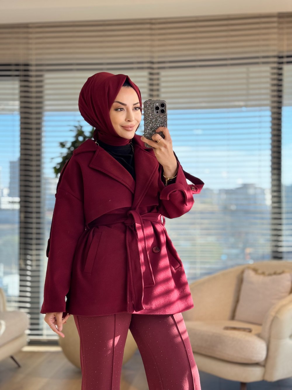 2221 Kaşe Apoletli Kısa Kaban Bordo