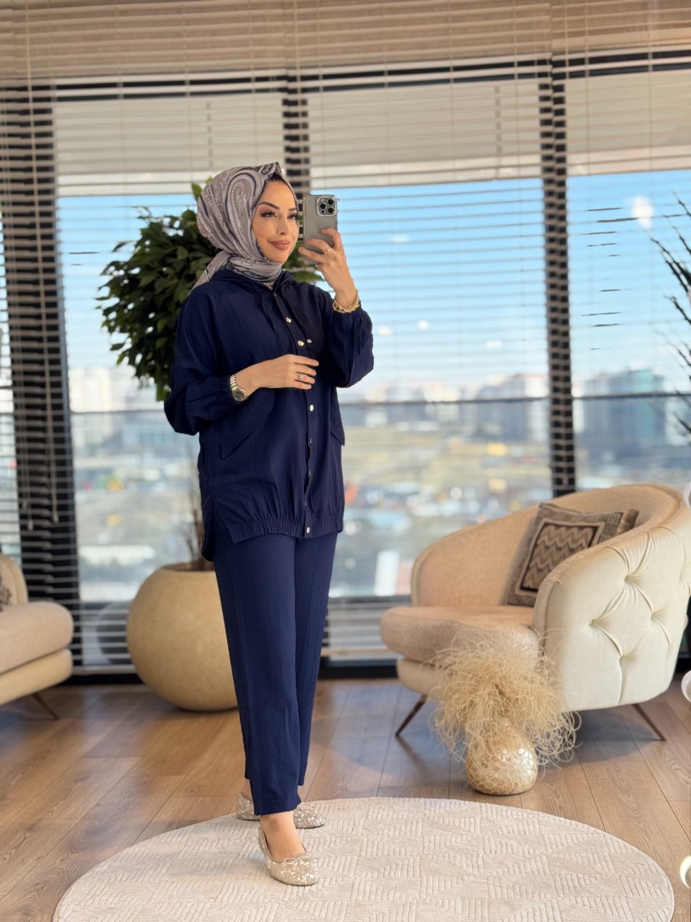 22664 Gofre Cep Kapaklı Kapşonlu Takım Lacivert