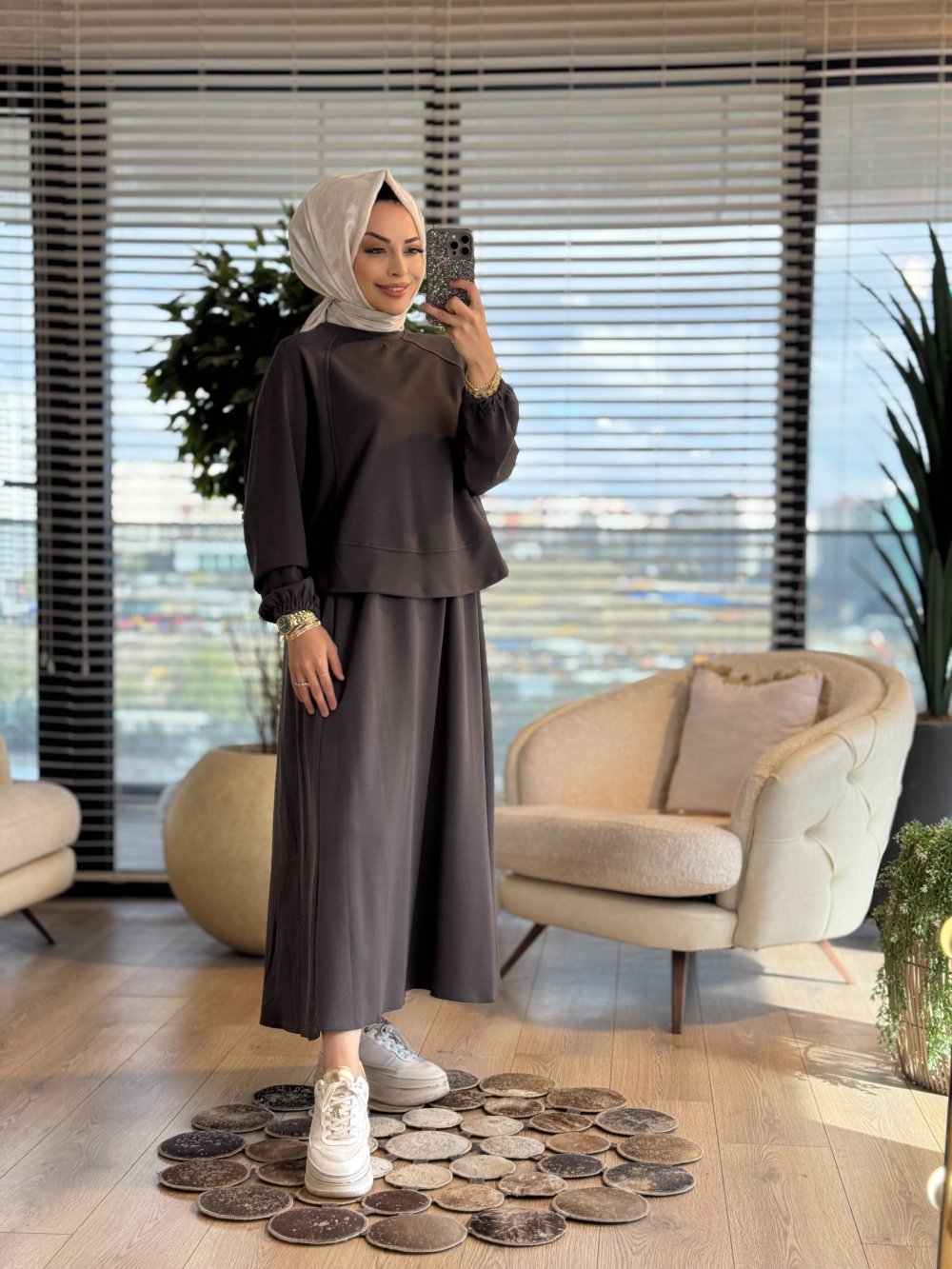 22779 Etek Ucu Parçalı Yarasa Kol Takım Antrasit