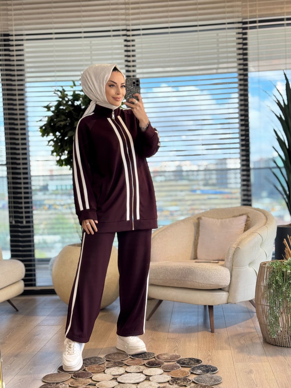 22787 Ön Kol Ve Pantolon Yanı Şeritli Takım Bordo