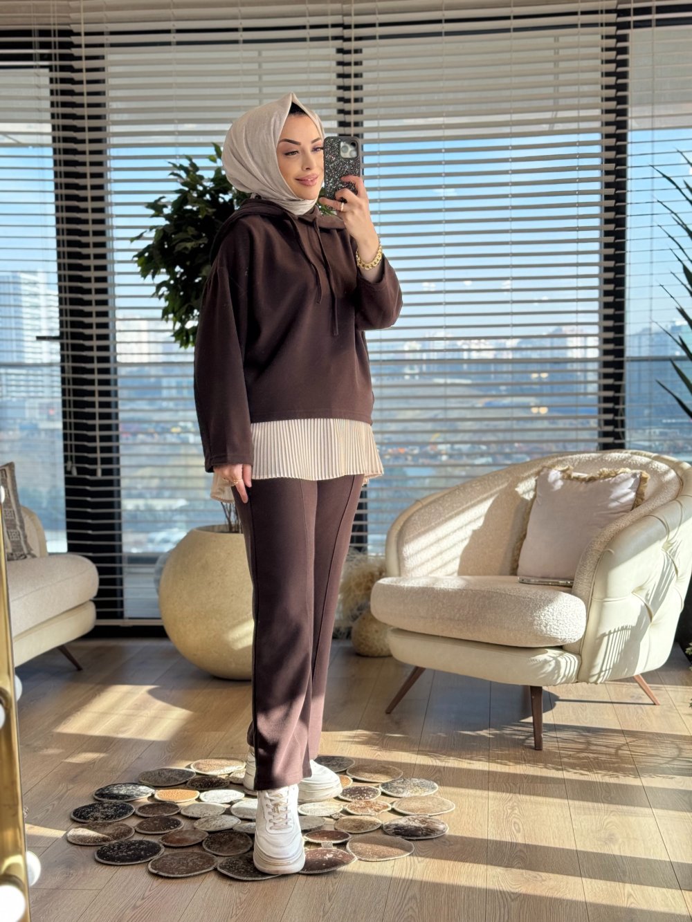 22803 Fitilli Kadife Yakalı Takım Kahve