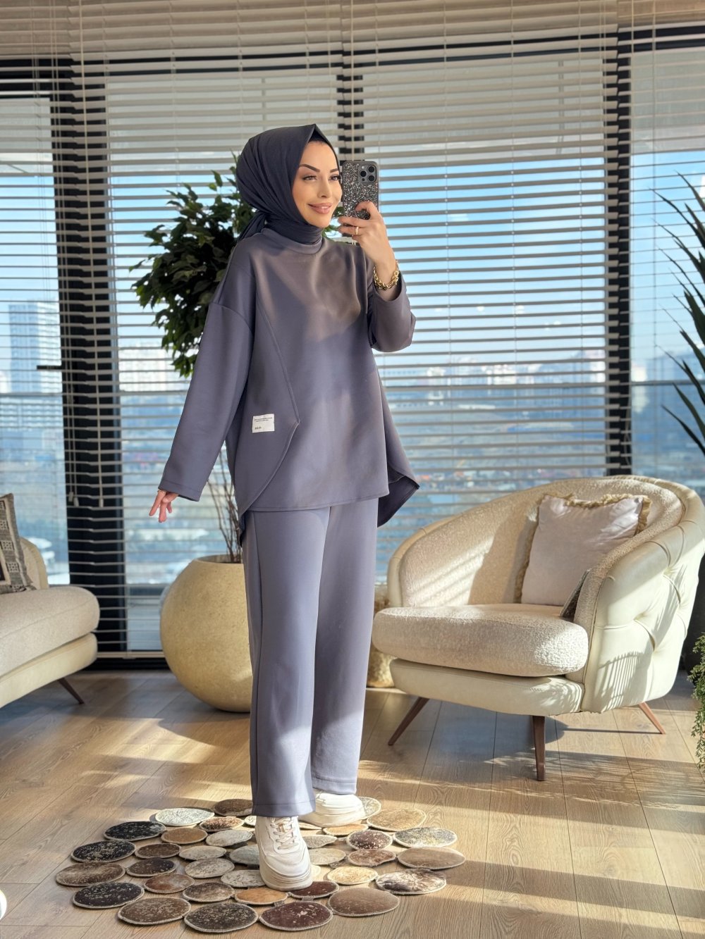 22809 Yanları Parça Ve Etiket Detaylı Takım Antrasit