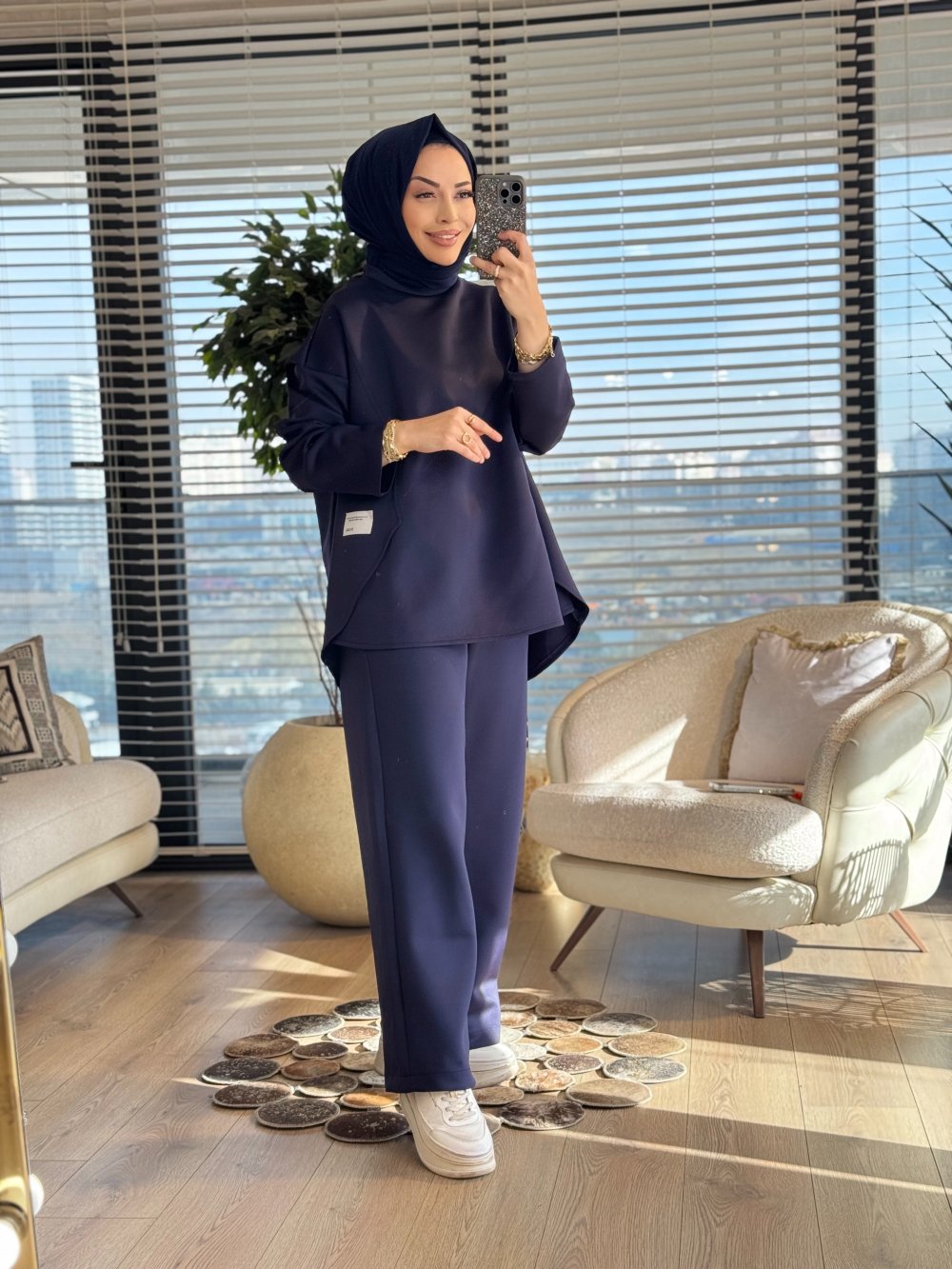 22809 Yanları Parça Ve Etiket Detaylı Takım Lacivert