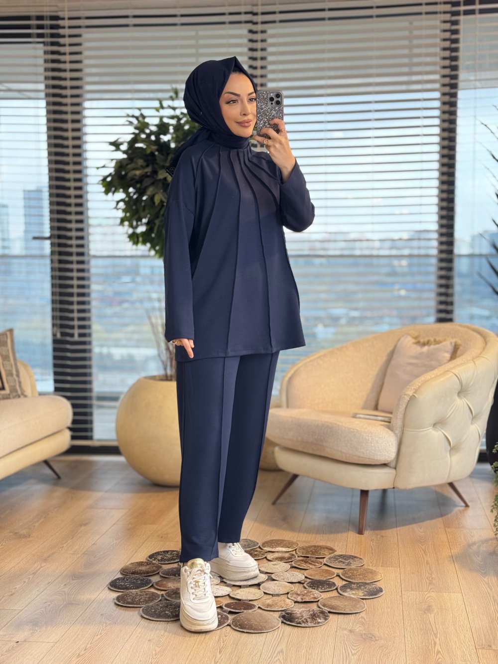 22813 Önü Nervür Dikişli Takım Lacivert