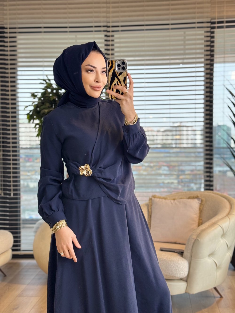 22823 Önü Parça Ve Broşlu Takım Lacivert