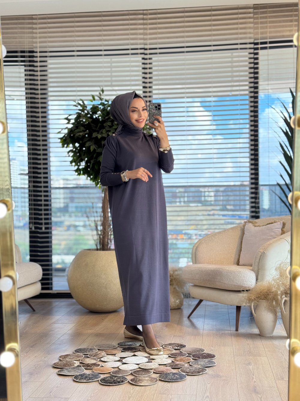 232 Omuzu Apoletli Triko Elbise Antrasit