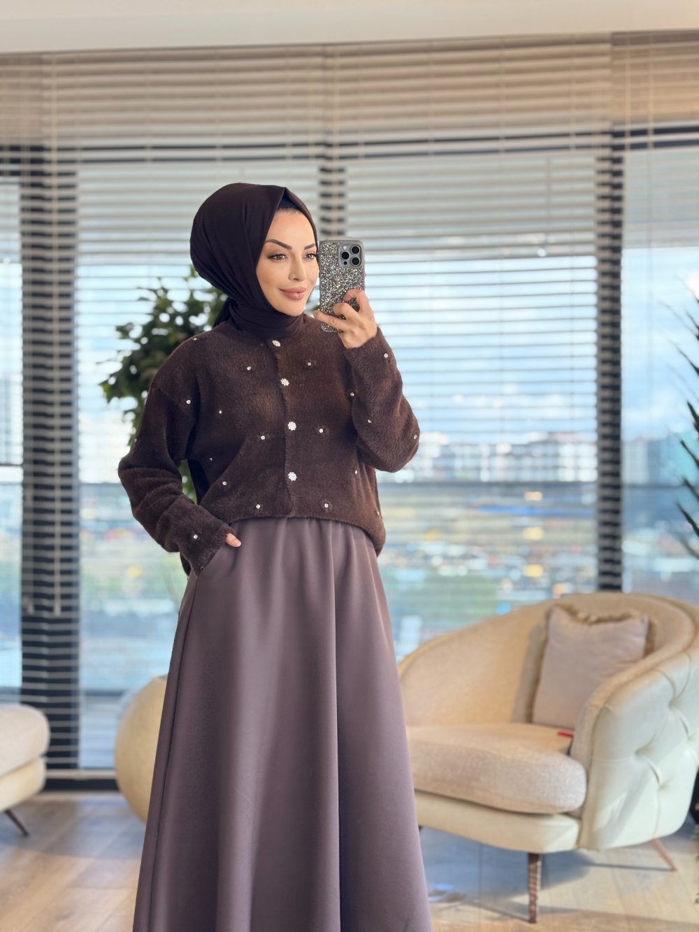 2408 Angora Üstü Taş İşlemeli Hırka Kahve
