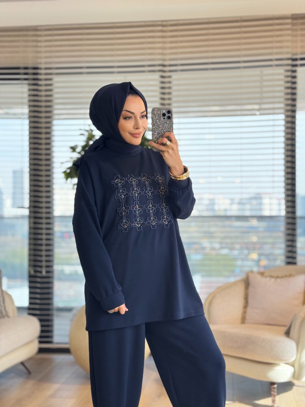24360 Önü Nakış Detaylı Tunik Lacivert