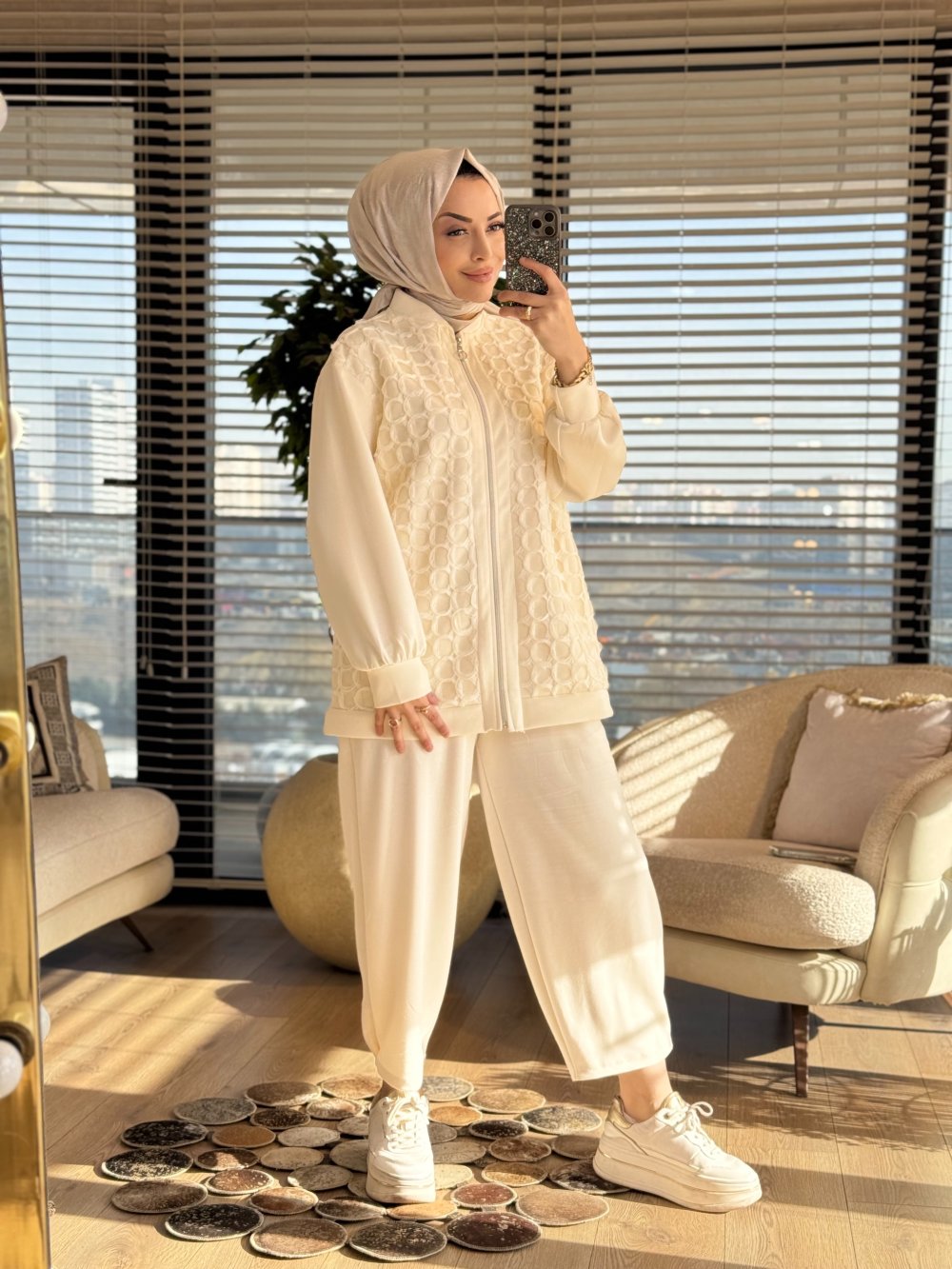 24377 Önü Oval Petek Örgülü Kap Krem