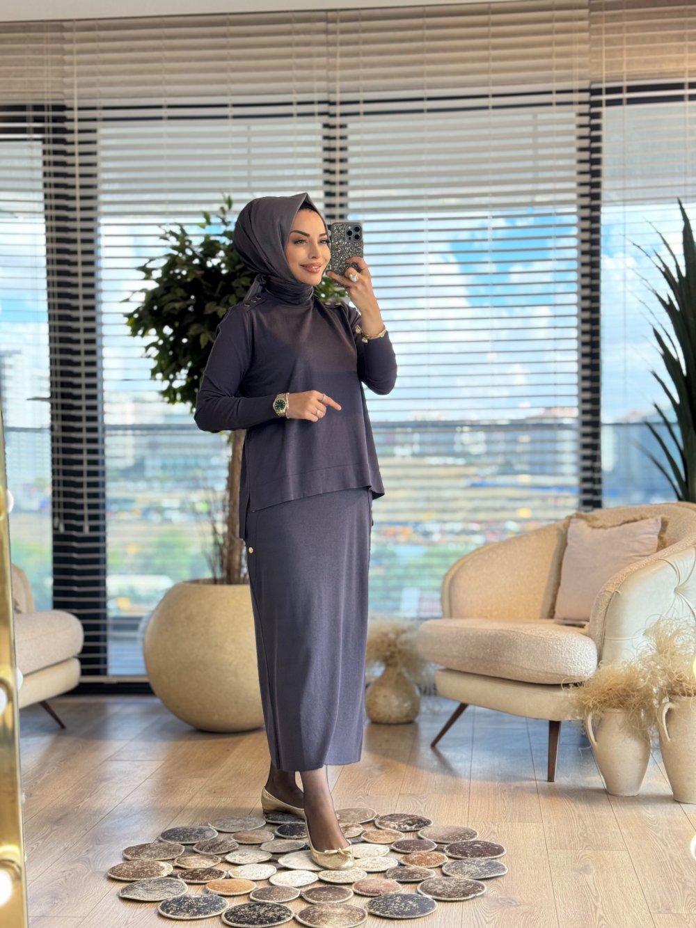 244 Omuz Apoletli Reglankol Triko Etekli Takım Antrasit
