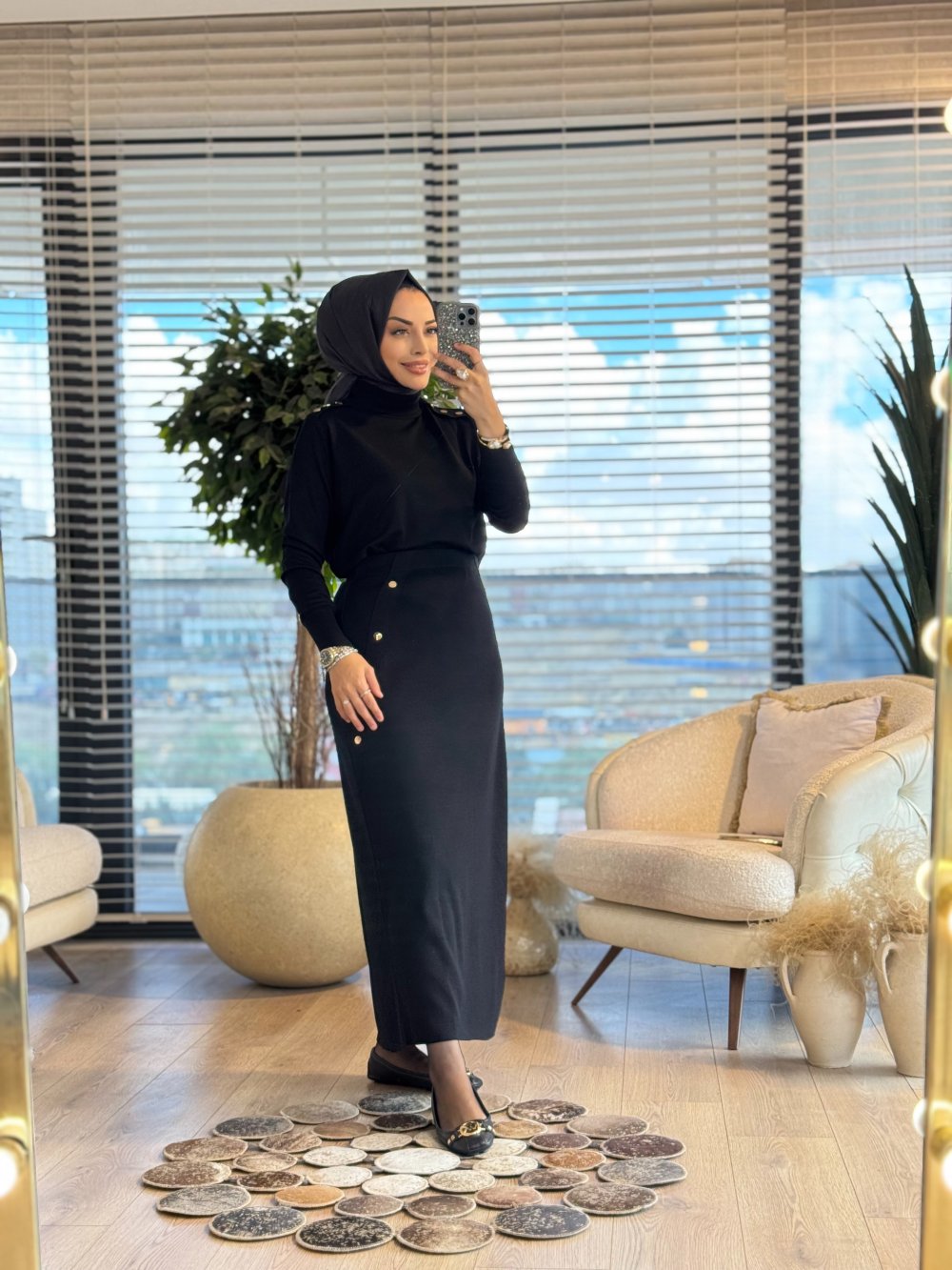 244 Omuz Apoletli Reglankol Triko Etekli Takım Siyah