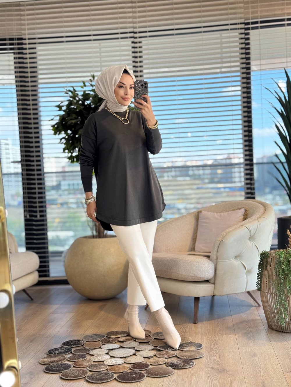 25004 Eteği Oval Sıfır Yaka Triko Tunik Haki