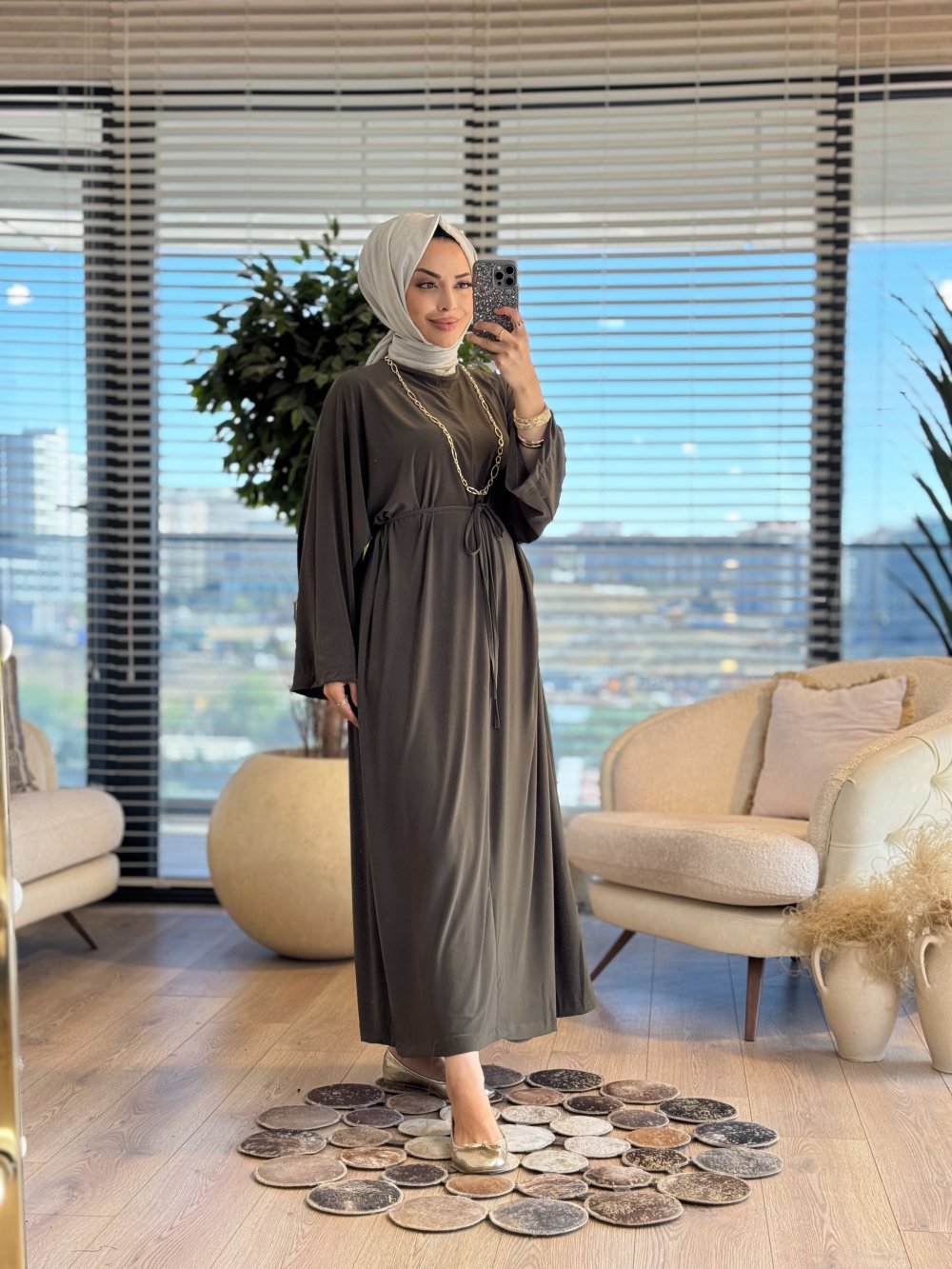 25117 Belden Bağlamalı Elbise Haki