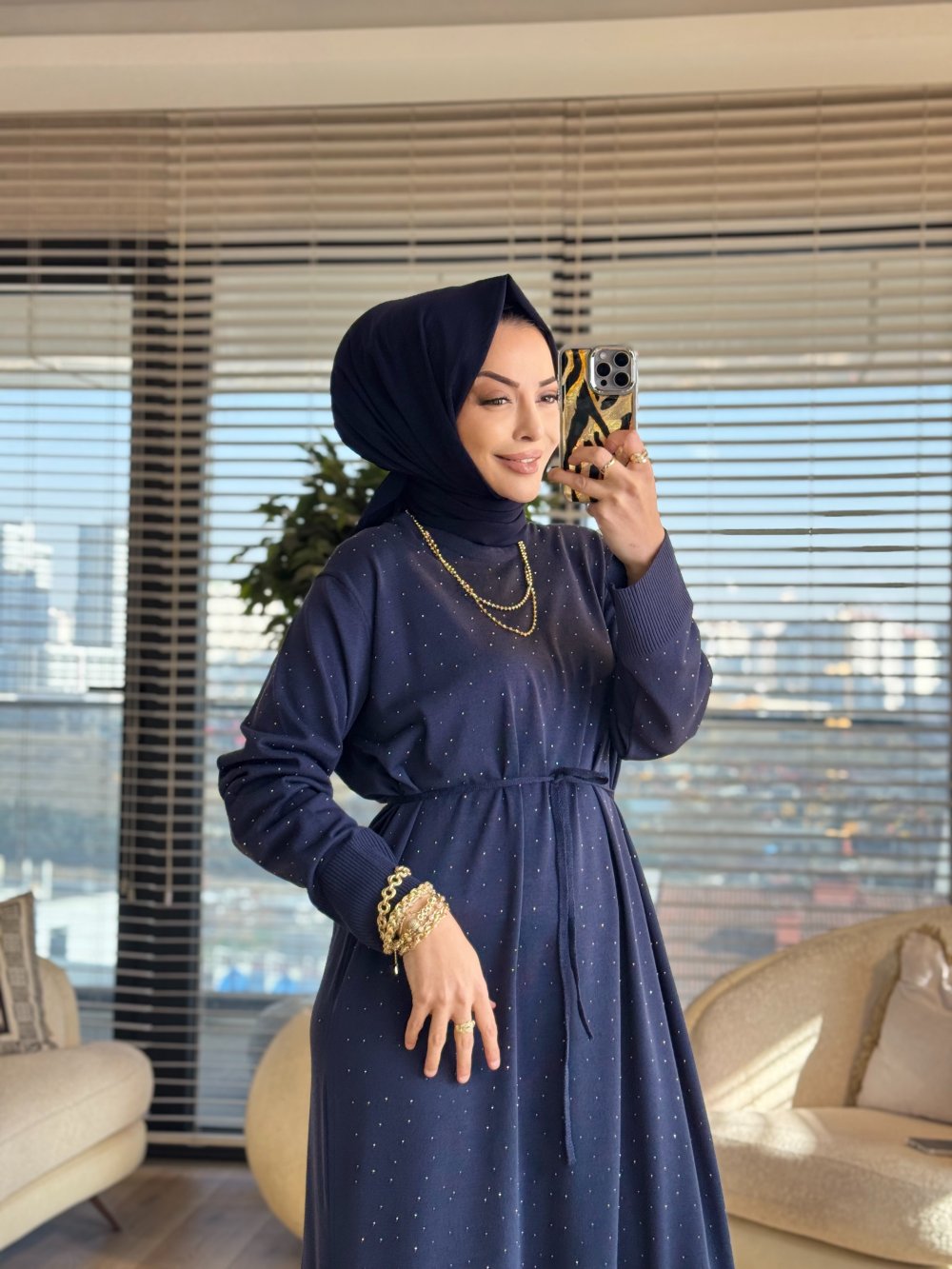 25196 Taş Detaylı Triko Elbise Lacivert