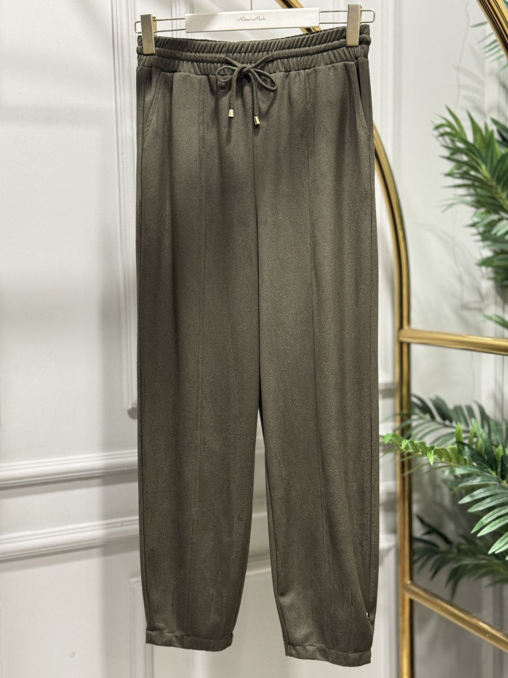 25551 Beli Lastikli Paçası Dikişli Pantolon Haki