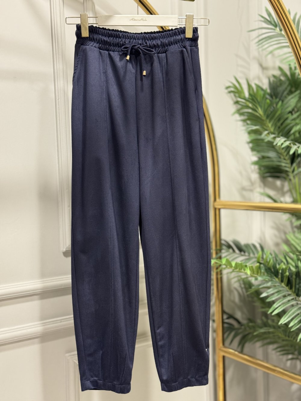 25551 Beli Lastikli Paçası Dikişli Pantolon Lacivert