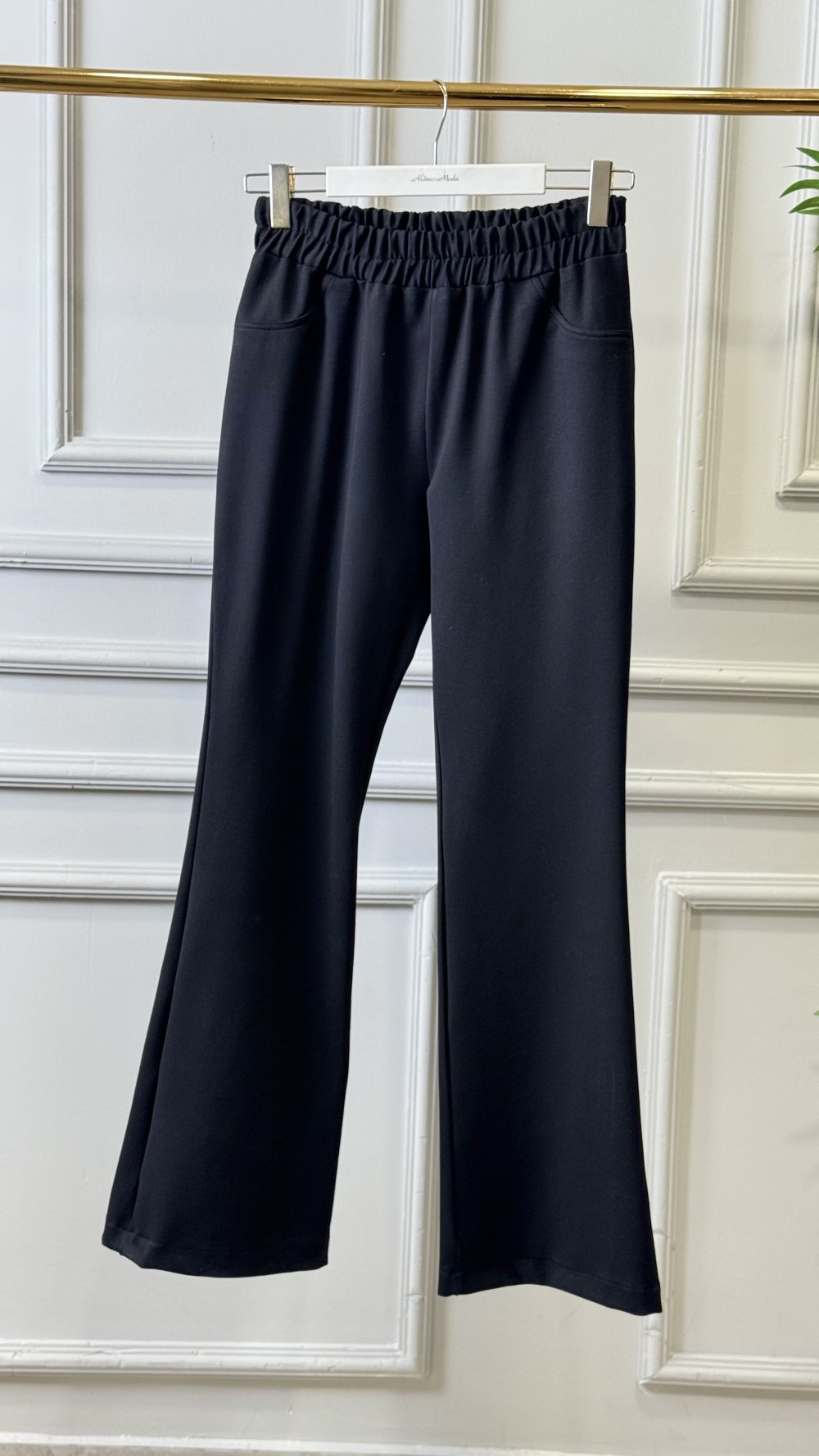 25561 Beli Lastikli Bol Paça Pantolon Siyah